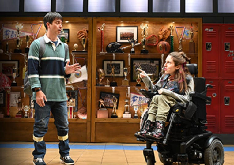 Much of the media attention on the play has focused appropriately on TD's centering of disability. Shakespeare's hunchbacked Richard refers to himself as "deformed, unfinish'd" (I.i), and most of the R3 characters, including Richard, see his body as a physical manifestation of his "subtle, false, and treacherous" nature. In TD, two of the six characters are disabled (as are the actors who play them): Richard (Gregg Mozgala) has cerebral palsy, while Buck (Shannon DeVido) uses a wheelchair. As disabled teens in the cruel culture of the American high school, they are inherently more sympathetic than Shakespeare's murderous, conniving soldier. That sympathy also complicates the narrative in interesting ways, as Buck is less complicit than R3's sycophantic Buckingham and Richard is more justified in his anger towards Eddie and the rest of the high school "royalty."